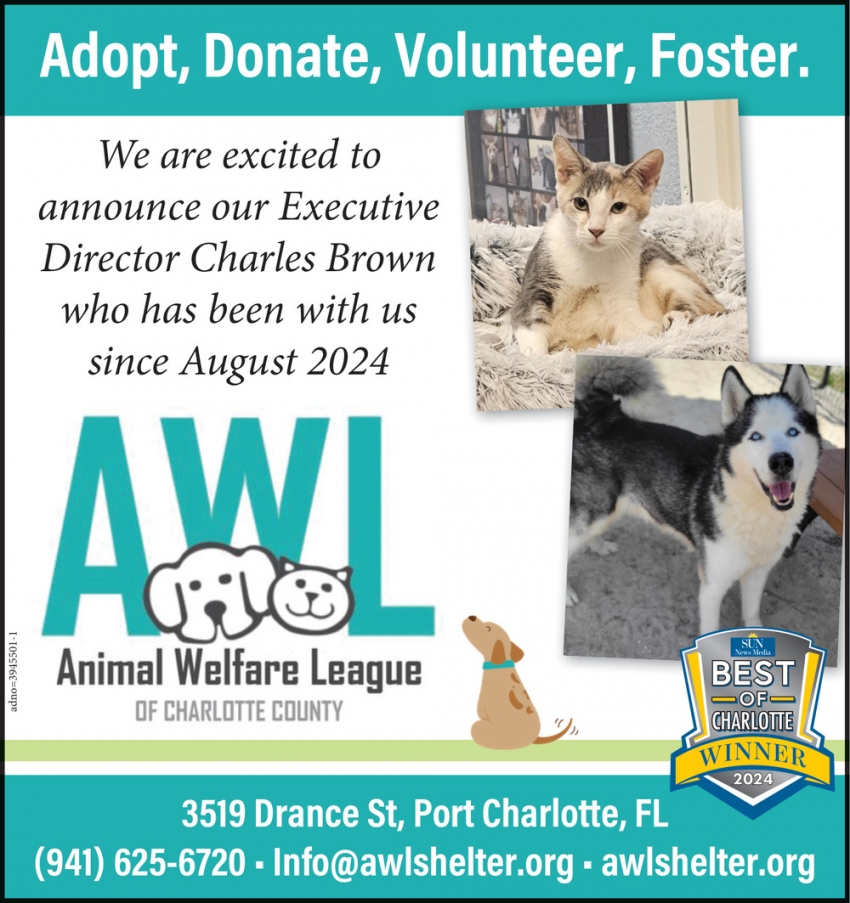 Nov 27, 2024. Animal Welfare League of Charlotte County Organization Ads from Your Sun