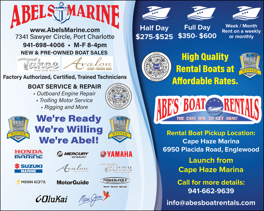 Ads for Abel's Marine - Abe's Boat Rentals in Port Charlotte, FL