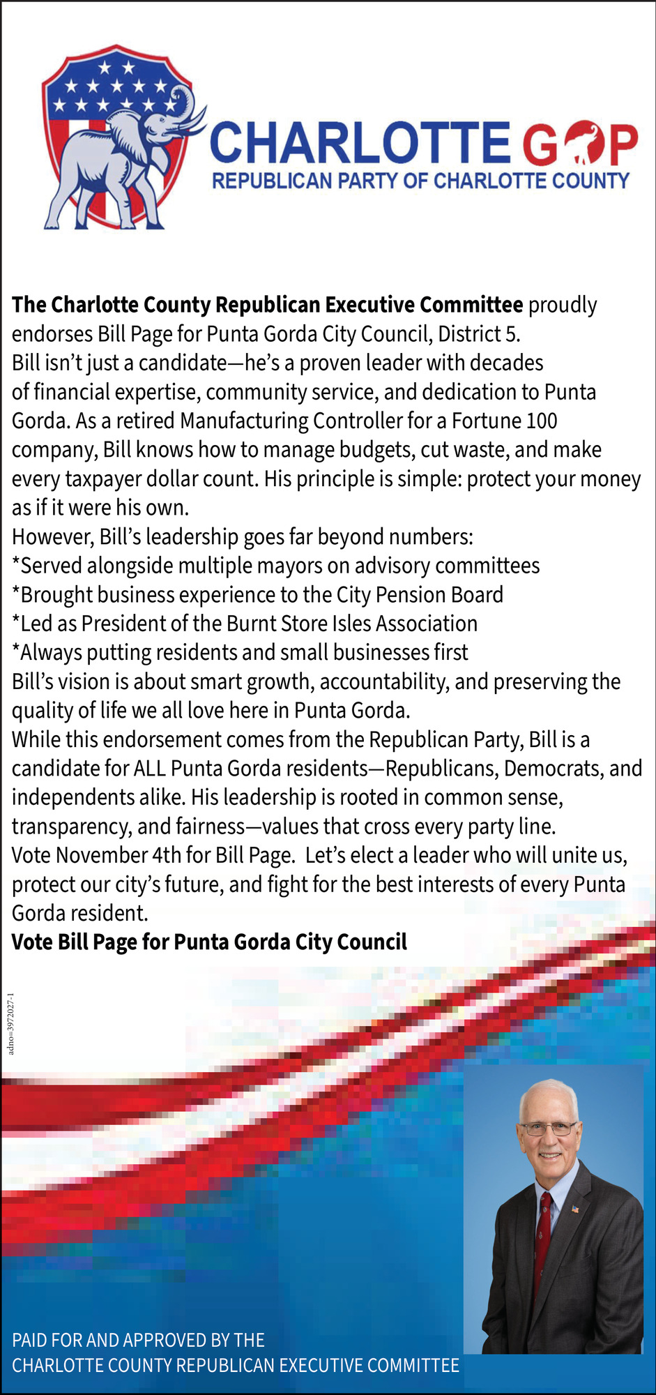Oct 04, 2025. Republican Party of Charlotte County Organization Ads from Your Sun
