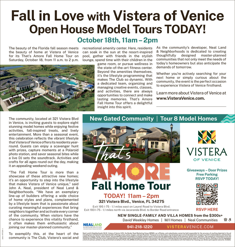 Oct 18, 2025. Vistera of Venice Real Estate Ads from Your Sun