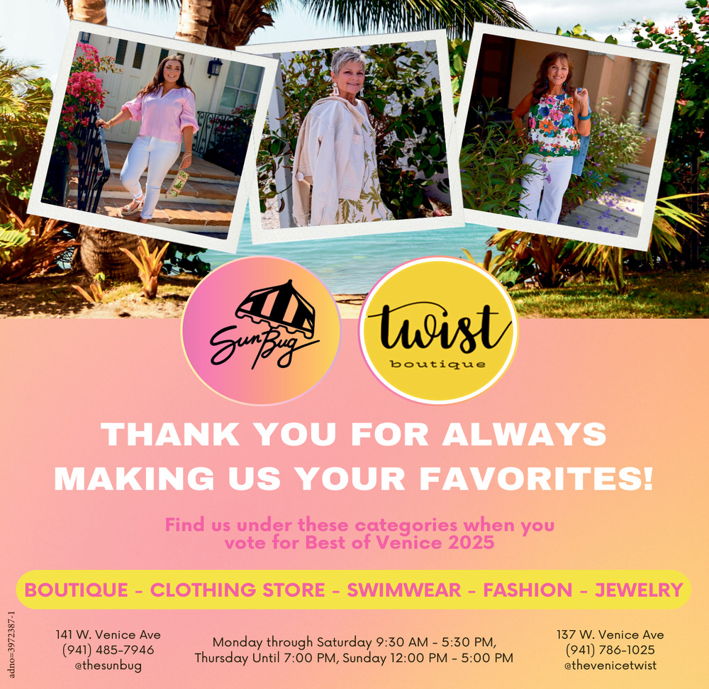 Ads for The Sun Bug / Twist Boutique in Venice, FL