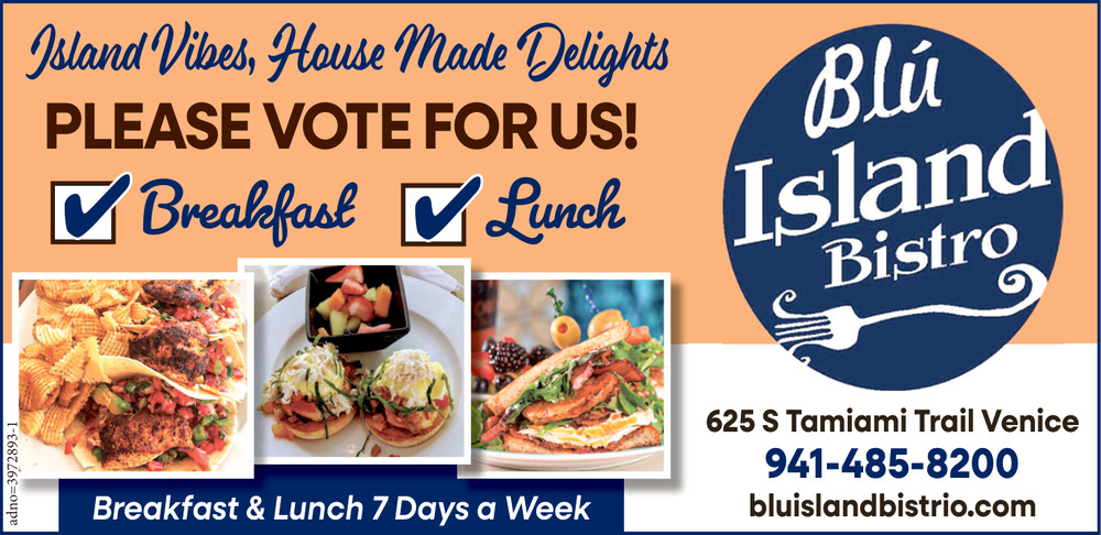 Oct 29, 2025. Blu Island Bistro Restaurants Ads from Your Sun