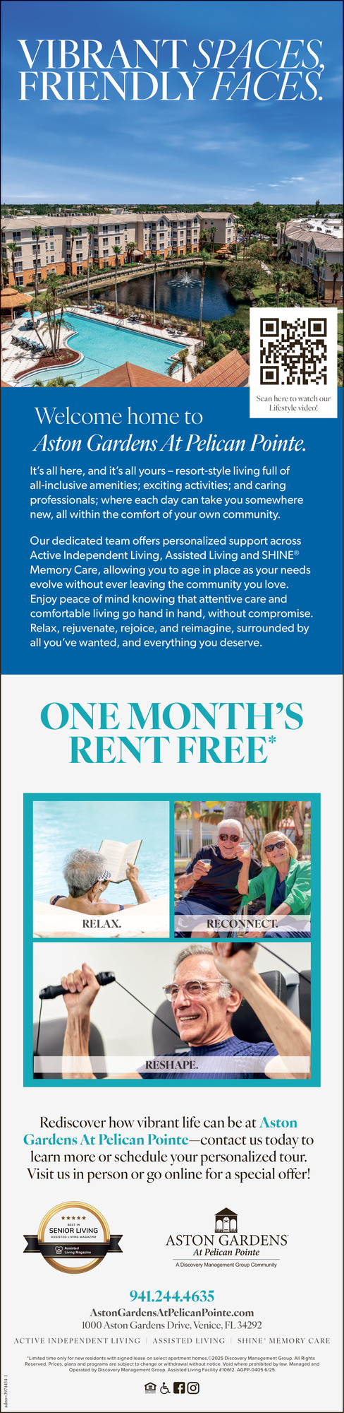 Nov 08, 2025. Aston Gardens at Pelican Pointe Senior Living Ads from Your Sun