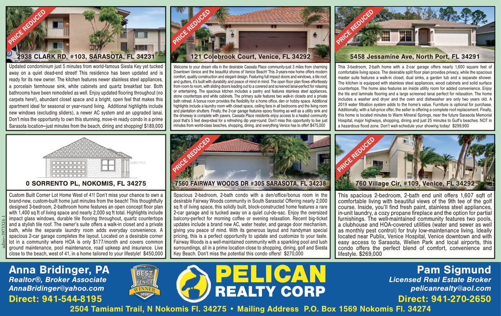 Ads for Anna Bridinger / Pam Sigmund - Pelican Realty Corp in Nokomis, FL