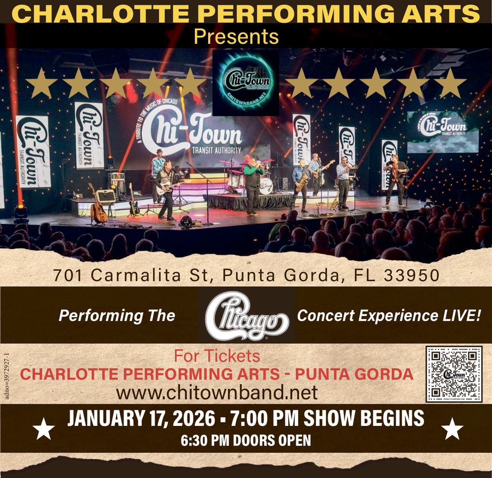Ads for Charlotte Performing Arts - Chitown Band (January 17, 2026) in Punta Gorda, FL