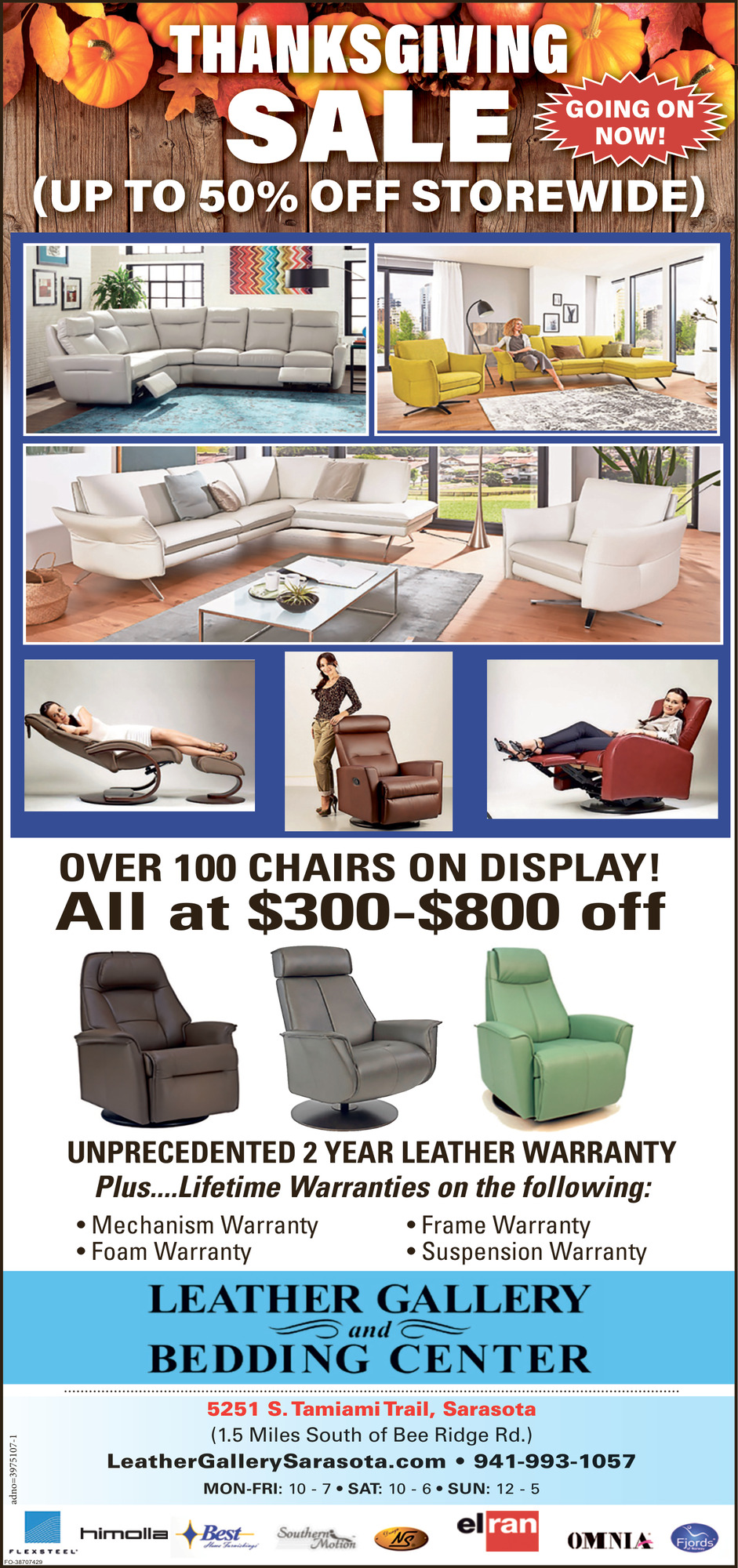 Nov 19, 2025. Leather Gallery and Bedding Center Home Furnishing Ads from Your Sun