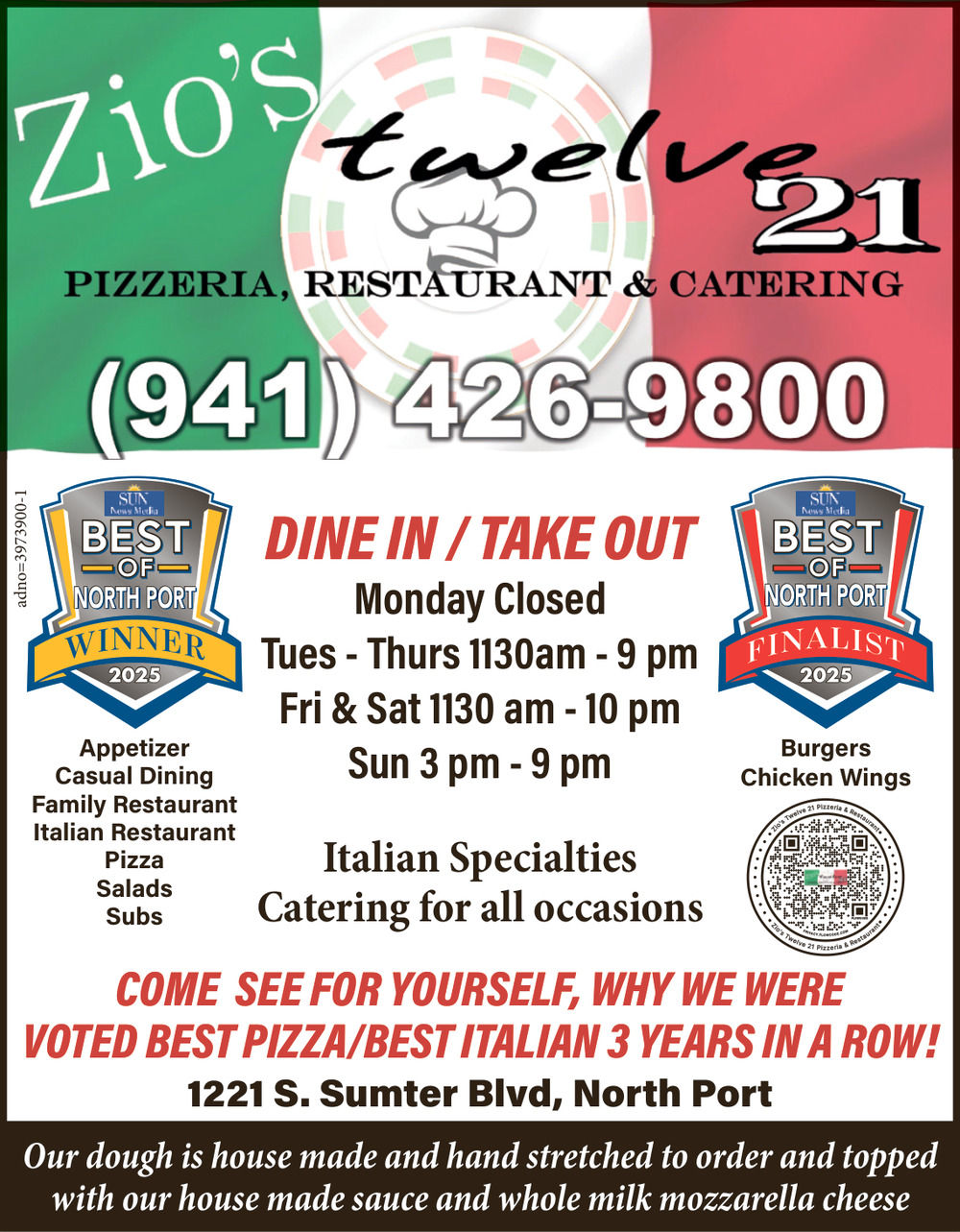 Ads for Zio’s Twelve 21 Pizzeria & Restaurant in North Port, FL
