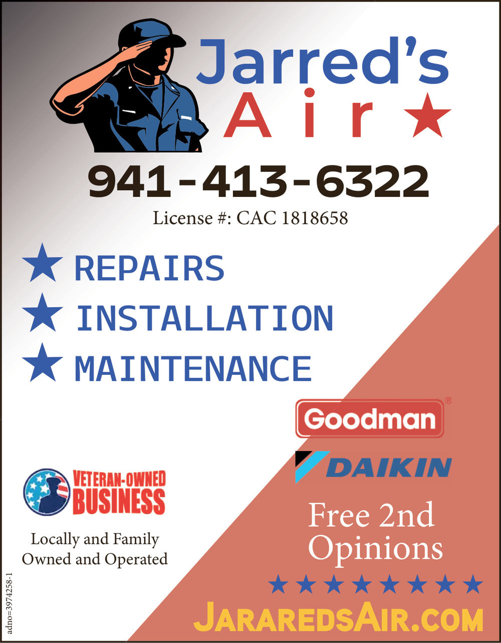 Ads for Jarred's Air in Charlotte, DeSoto and Southern Sarasota County