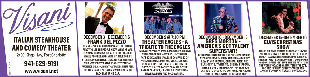 941-629-91912400 Kings HwyPort Charlotte, FL 33980(Visani Comedy Dinner Theater)
