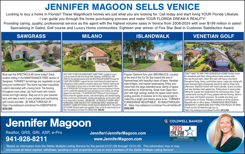 Ads for Jennifer Magoon - Coldwell Banker Realty in Venice, FL