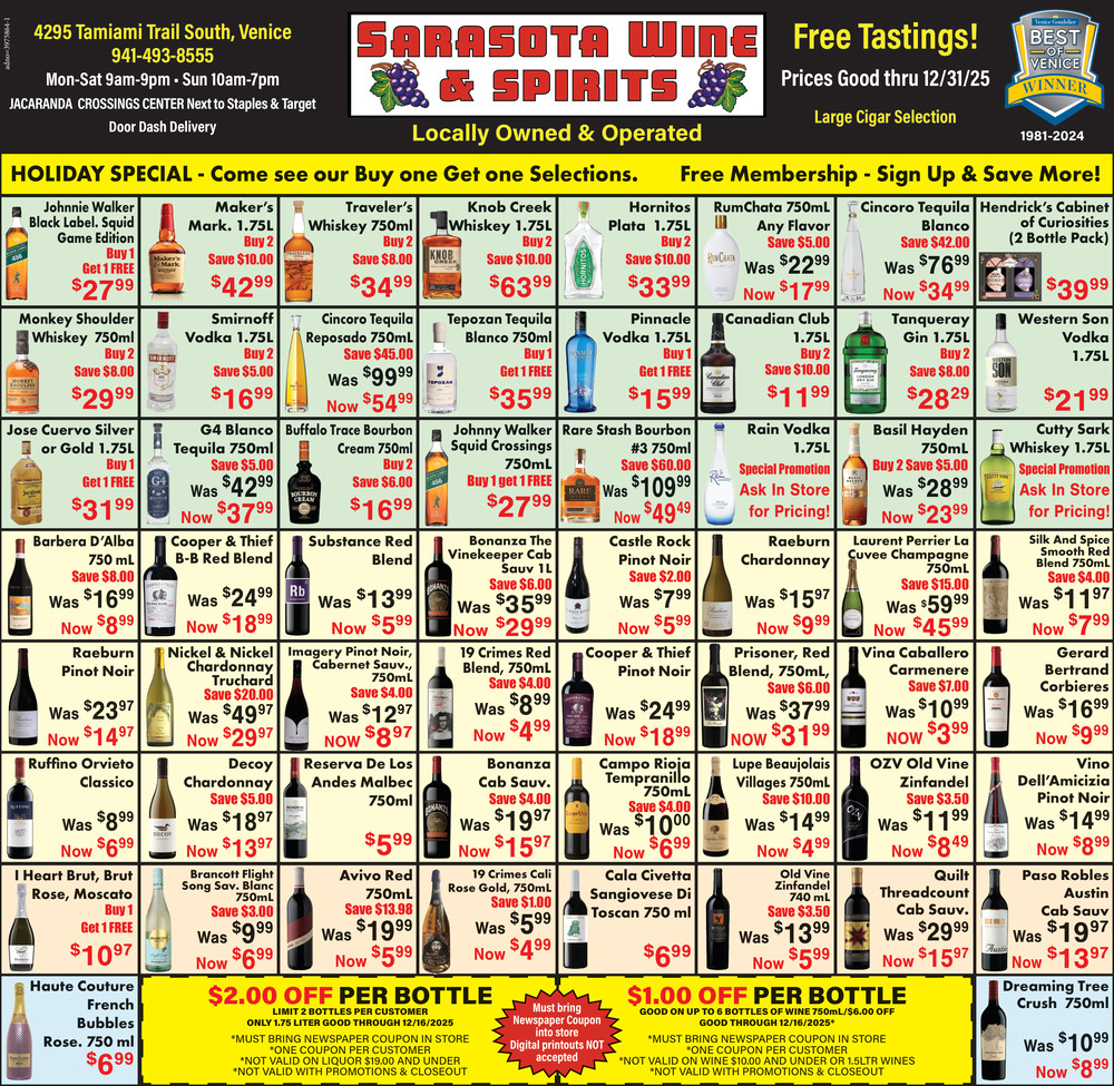 941-493-85554295 S Tamiami TrailVenice, FL 34293(Sarasota Wine & Spirits)