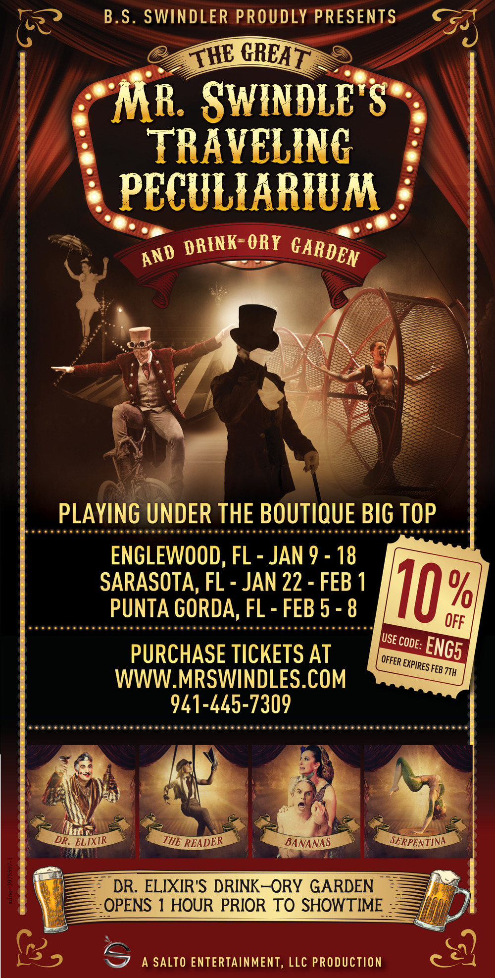Ads for Mr. Swindle's Traveling Peculiarium (January 8 - February 9, 2025) in Englewood, FL