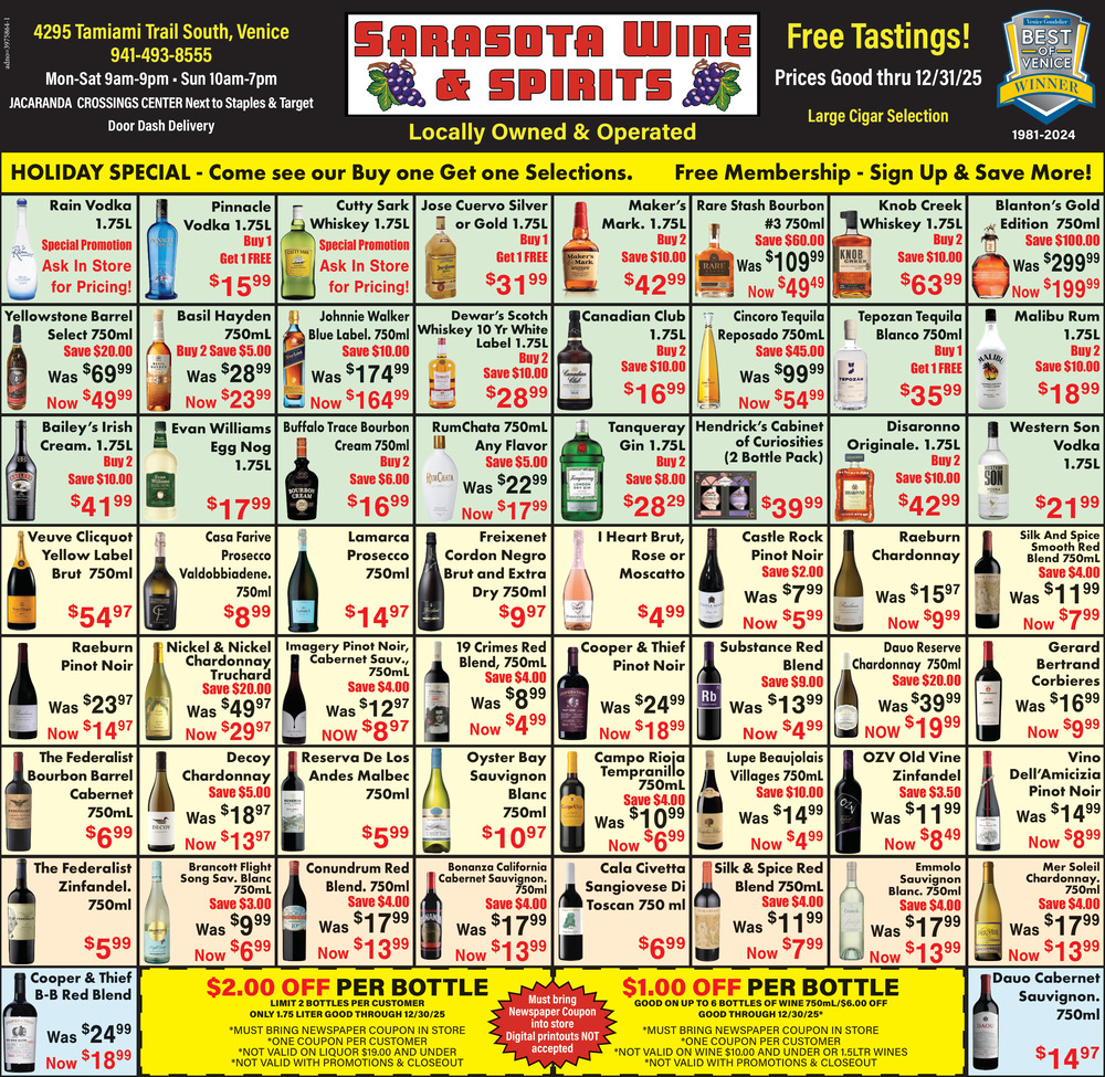 941-493-85554295 S Tamiami TrailVenice, FL 34293(Sarasota Wine & Spirits)