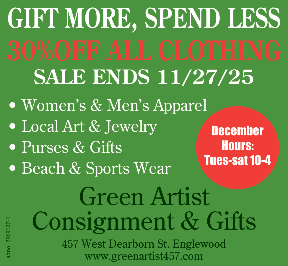 215-817-2330457 W Dearborn StEnglewood, FL 34223(Green Artist Consignment & Gifts)