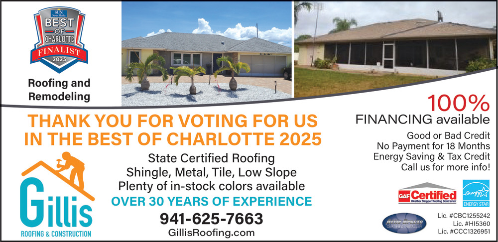Ads for Gillis Roofing & Construction in Port Charlotte, FL