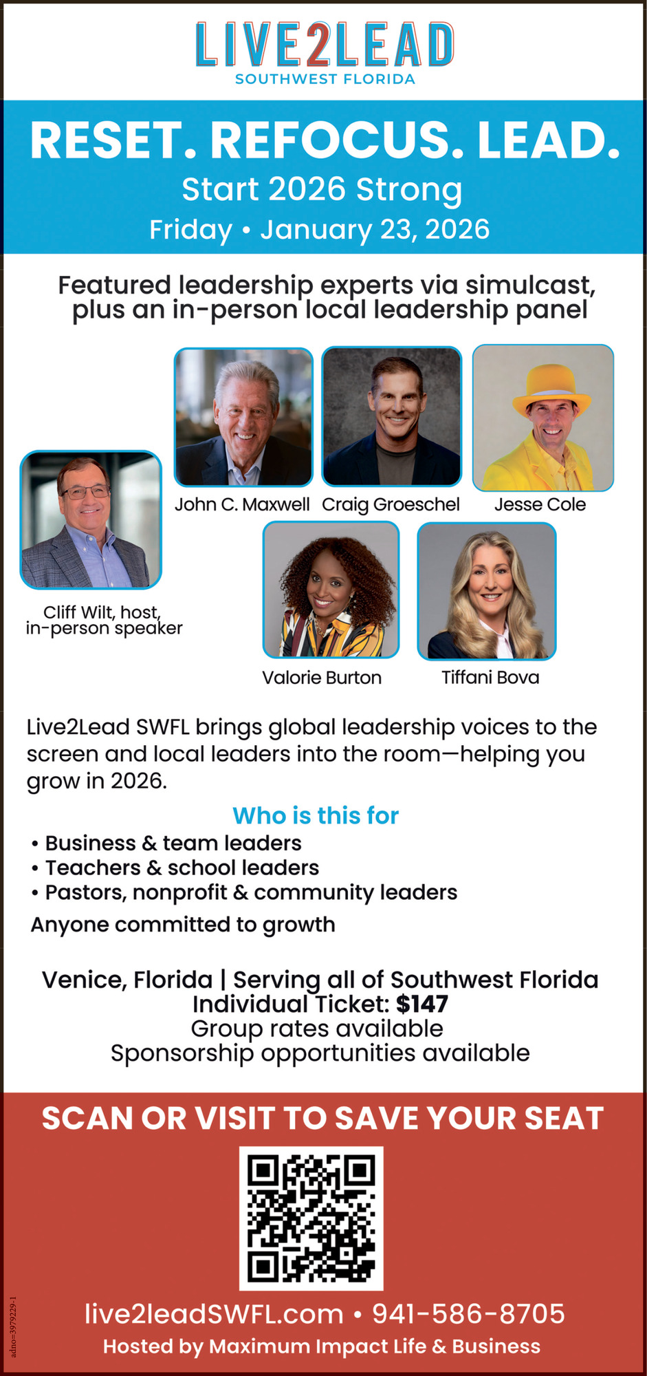 Dec 31, 2025. Live 2 Lead Southwest Florida (January 23, 2026) Events Ads from Your Sun