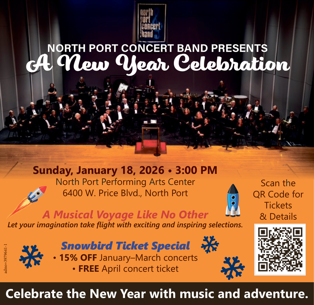 Jan 14, 2026. North Port Concert Band a New Year Celebration (January 18, 2026) Concerts Ads from Your Sun