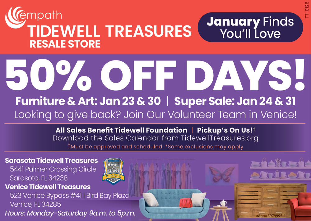 Jan 17, 2026. Tidewell Treasures Thrift Shops Ads from Your Sun