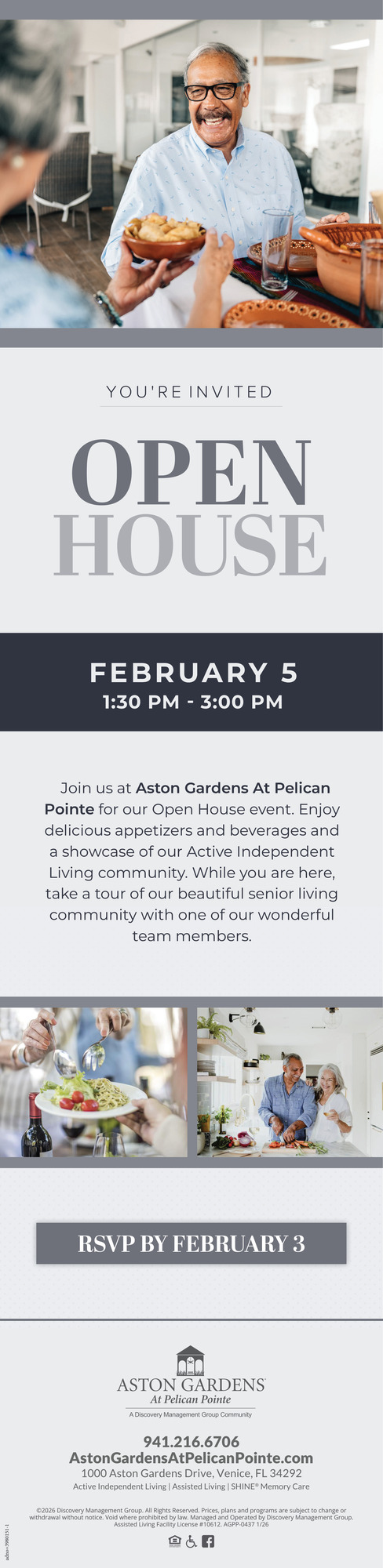 Jan 24, 2026. Aston Gardens at Pelican Pointe Senior Living Ads from Your Sun