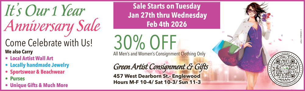 215-817-2330457 W Dearborn StEnglewood, FL 34223(Green Artist Consignment & Gifts)