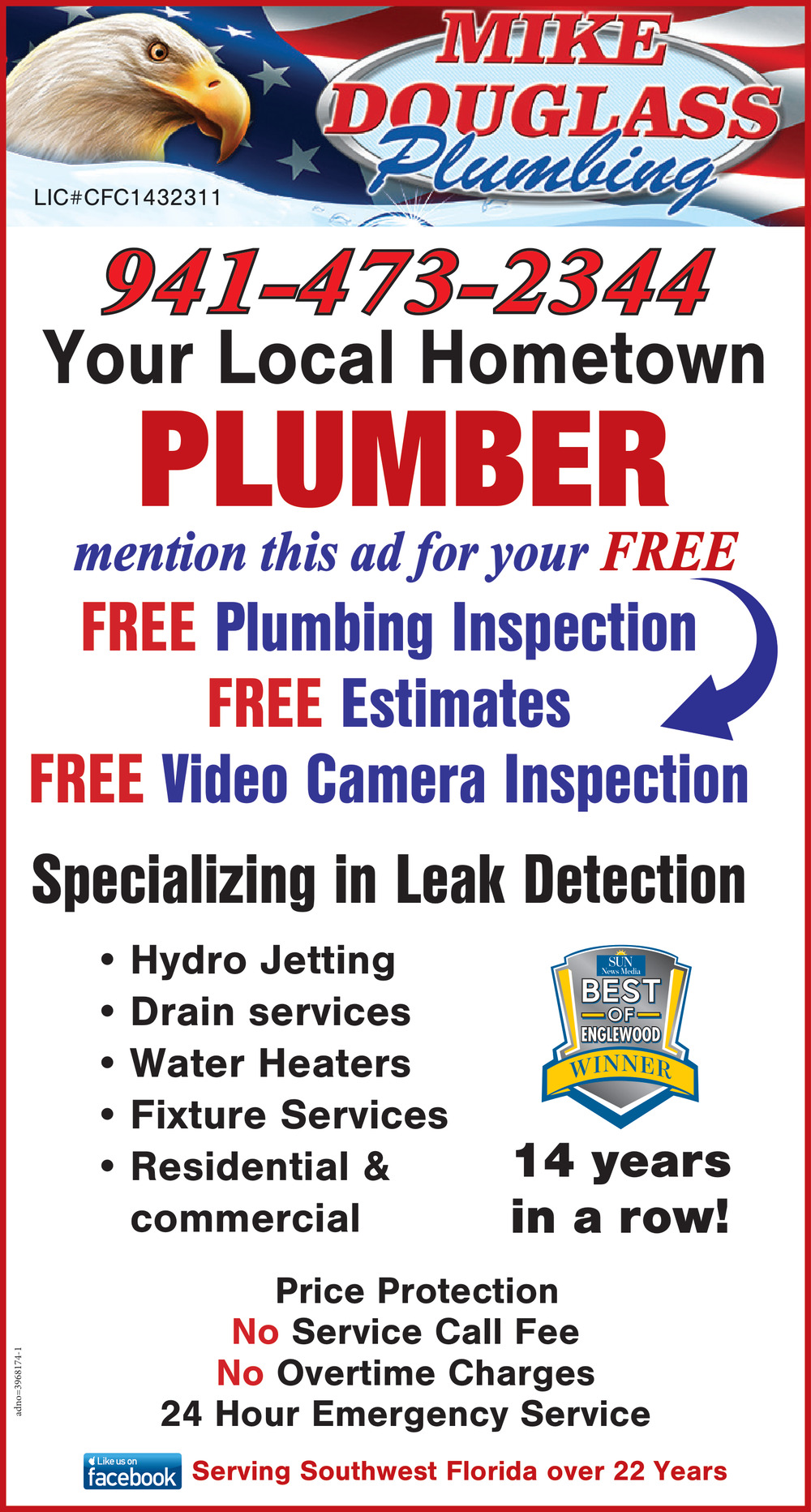Ads for Mike Douglas Plumbing in Englewood, FL