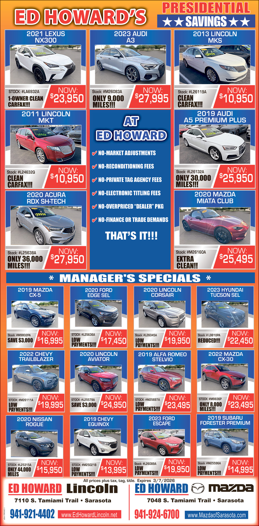 941-921-44027110 S Tamiami TrailSarasota, FL 34231(Ed Howard Lincon)