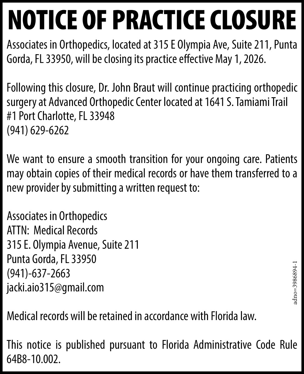 Ads for Associates In Orthopedics in Punta Gorda, FL