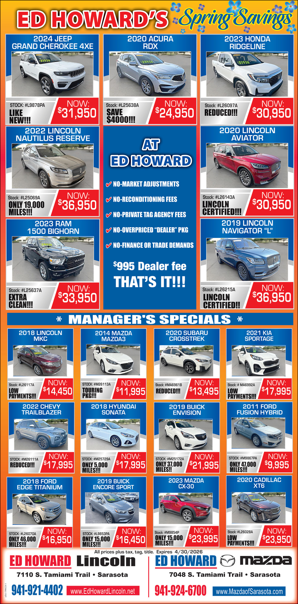 941-921-44027110 S Tamiami TrailSarasota, FL 34231(Ed Howard Lincon)