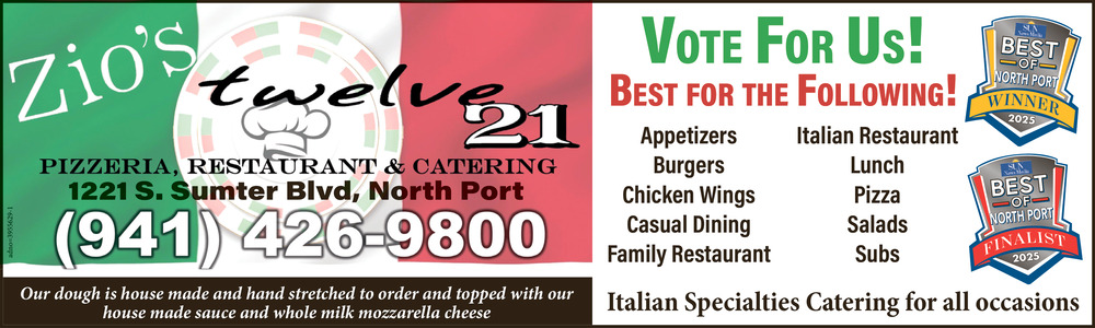 Ads for Zio’s Twelve 21 Pizzeria & Restaurant in North Port, FL