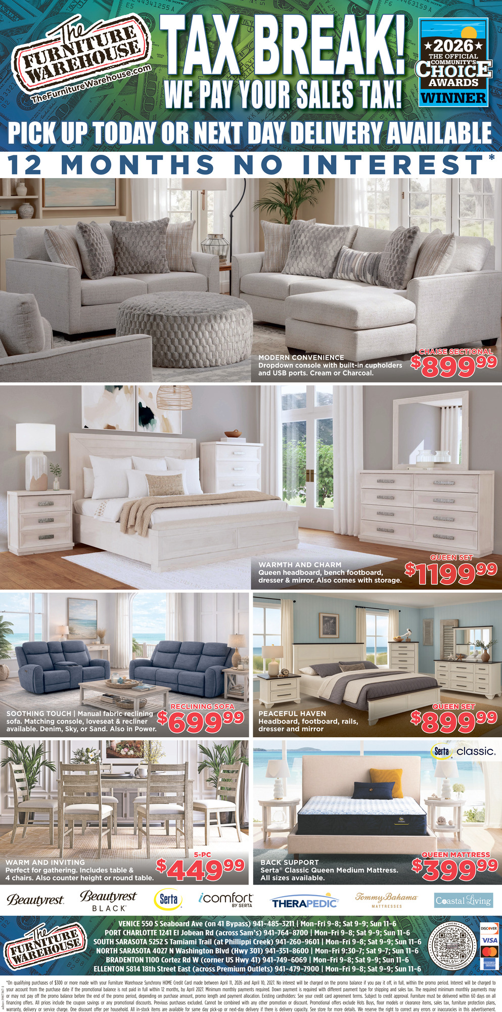 Apr 18, 2026. Furniture Warehouse Home Furnishing Ads from Your Sun
